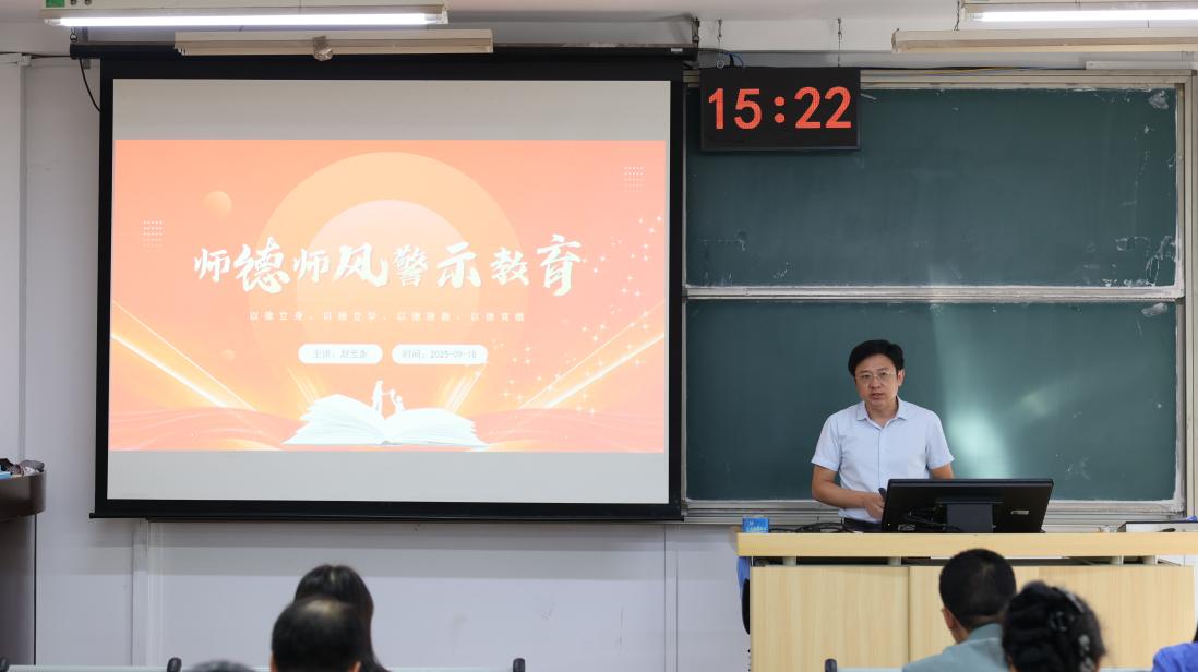 2025年9月18日,英国正版365中文官网在文法楼305召开2025-2026学年第一学期全体教职工大会,学院全体教职工参加会议,学院党委书记赵宝永主持。